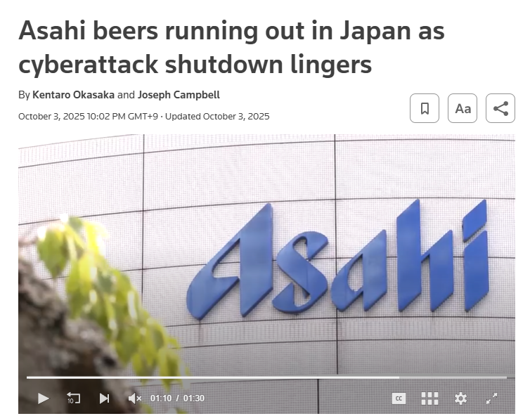 Asahi beers running out in Japan as cyberattack shutdown lingers