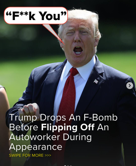 Trump drops an F-Bomb before flipping off an autoworker during appearance.