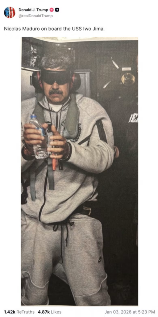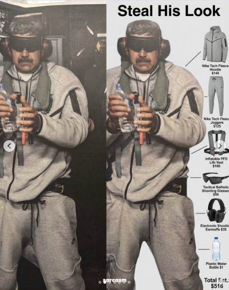 目隠し&手錠姿のマドゥロ大統領…なんだけど、みんなの視線が釘付けになったのは、彼の服装。